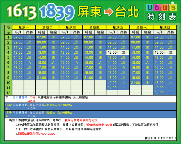 【1613】/【1839】 屏東 → 台北