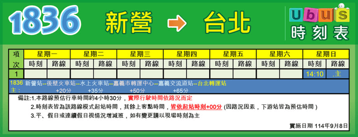 【1836】 新營 → 臺北