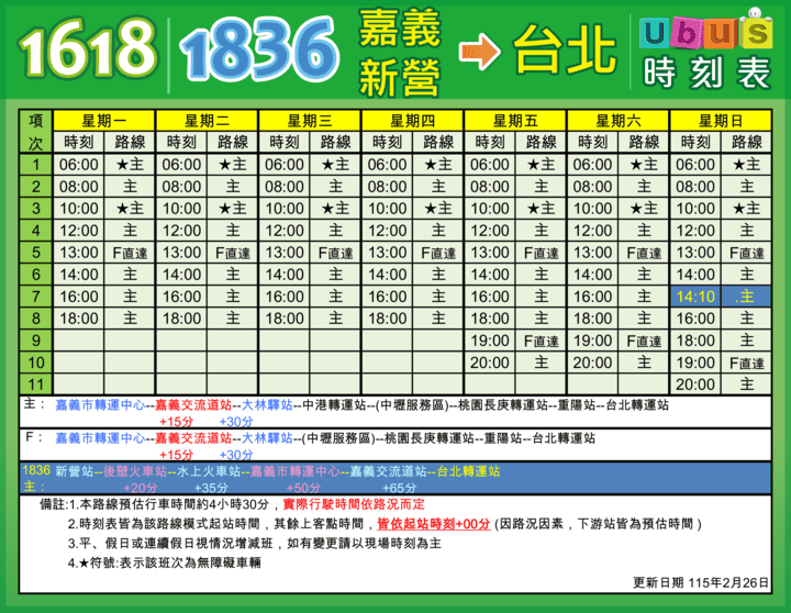 【1618】/【1836】 嘉義/新營 → 台北