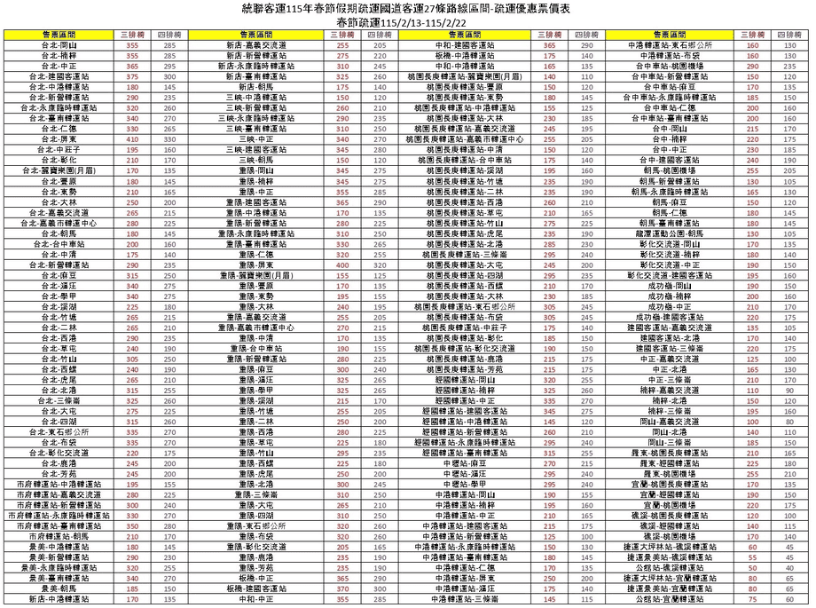 3.疏運原價可參考:(票價表-雲端連結)