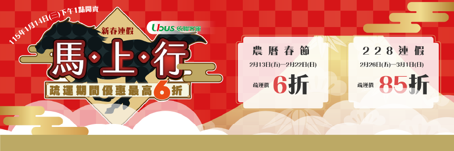 【春節連假優惠票價】期間自115年02月13日00:00起至115年02月22日23:59止