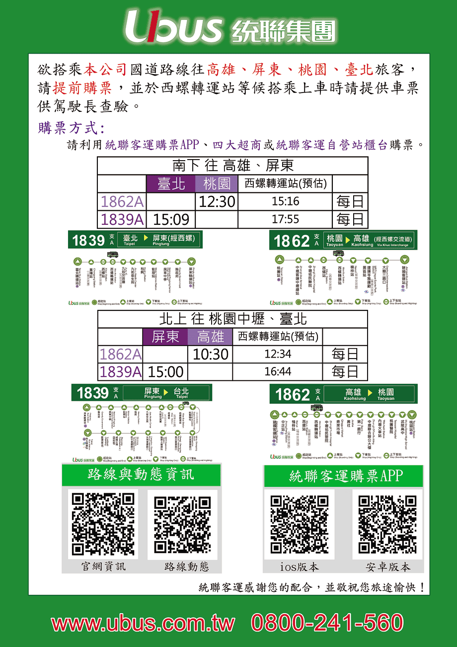 【1839(A)】臺北-屏東(經西螺交流道)、