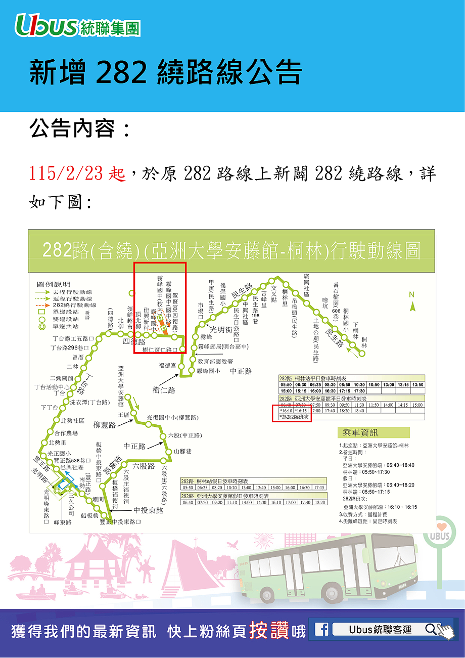 新增 282繞路線 公告